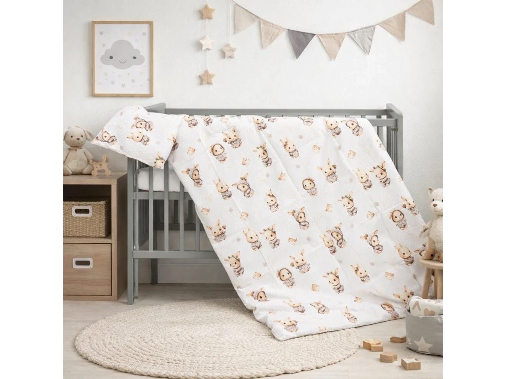 Roztomilý motív zajačika navyše krásne doplní detskú postieľku a navodí pokojnú atmosféru na zaspávanie. Obliečky sú ľahké na údržbu a možno ich prať v práčke.