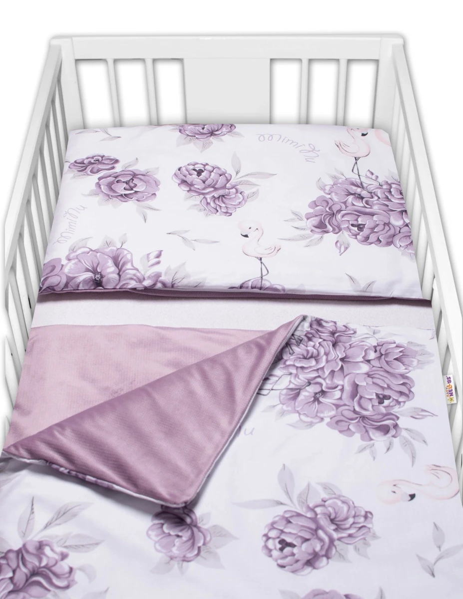 3-dielna sada Mantinel s obliečkami, bavlna/velvet, Plameniak - slivkový
