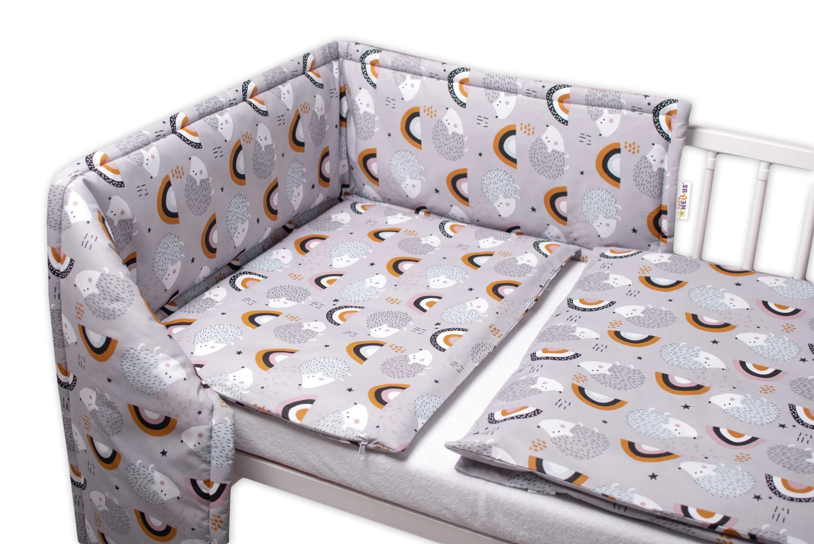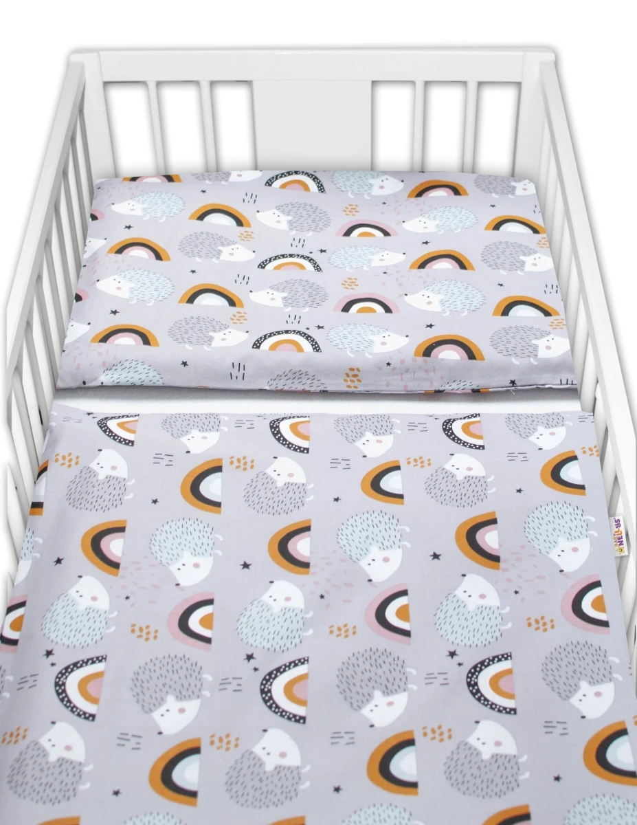 3-dielna sada Mantinel s obliečkami Ježko a dúha šedej Baby Nellys