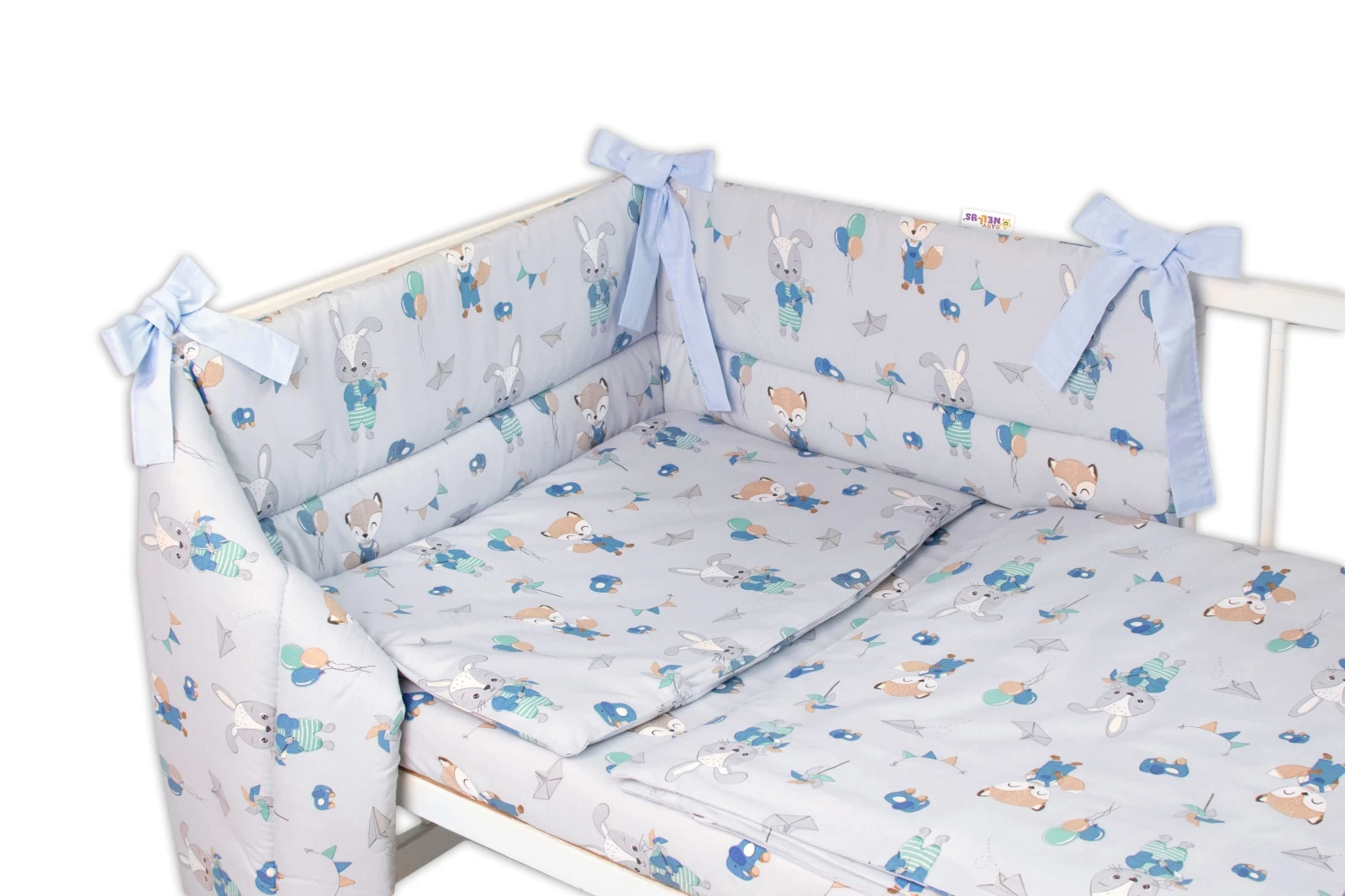 3-dielna sada Mantinel s obliečkami Líška a zajac modrej 135x100 cm