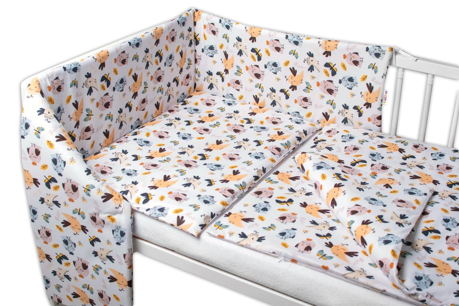3-dielna sada Mantinel s obliečkami Vtáčiky a Vážky biela Baby Nellys