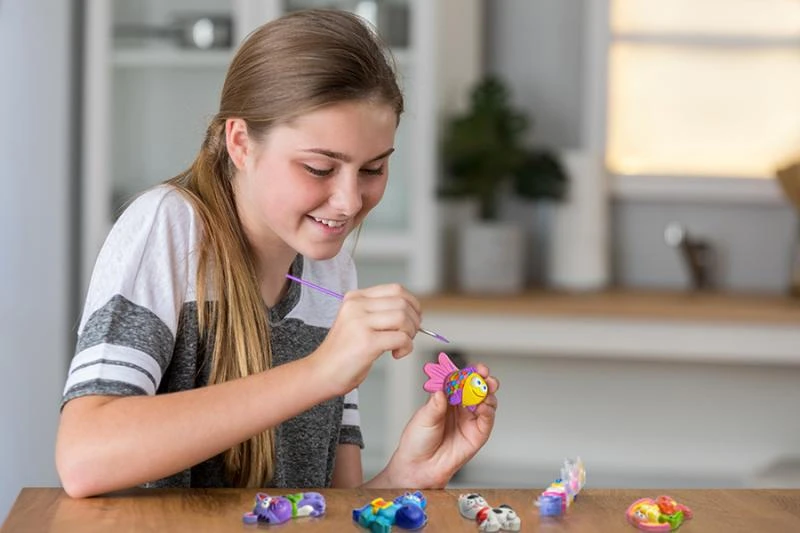 Balenie obsahuje odlievacie formičky, sadrový prášok, farby, štetec a ďalšie súčasti, pomocou ktorých si môžete vyrobiť odznaky alebo magnetky na chladničku.