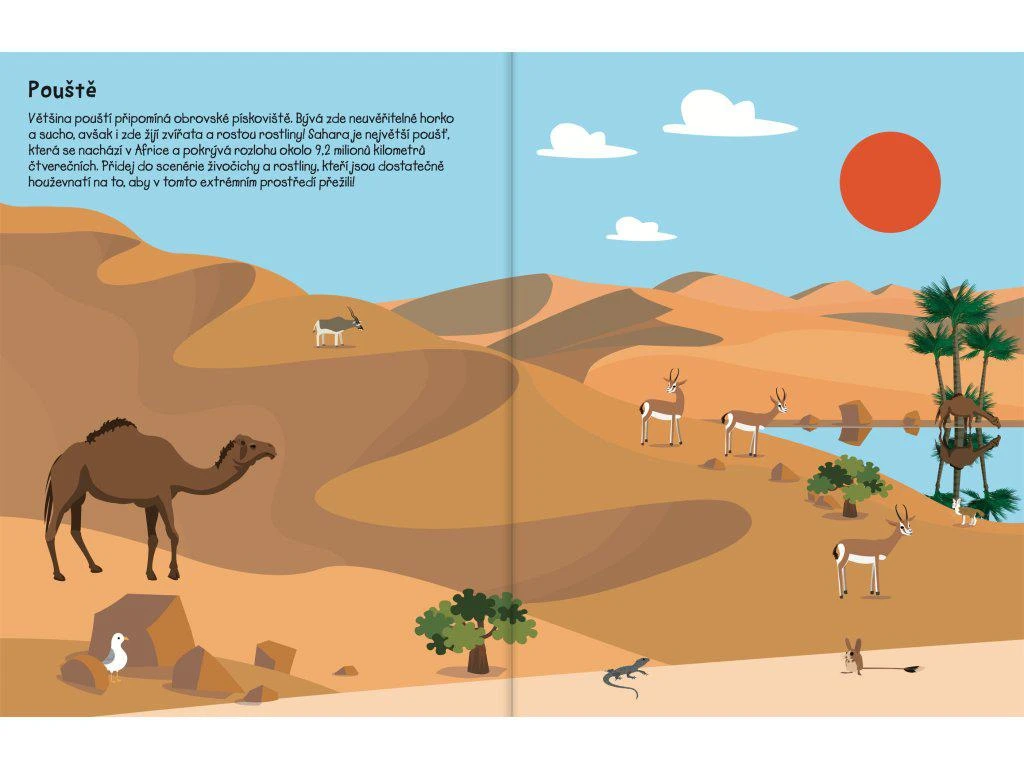 Viac ako 555 samolepiek čaká na teba a tvoju predstavivosť v tomto úžasnom zošite! Preskúmaj úchvatnú planétu Zem od najväčších hlbín rozľahlých oceánov až po vrcholky najvyšších hôr. Doplňuj nepreberné množstvo samolepiek do prírodných scenérií podľa vlastnej fantázie a sleduj najrôznejšie prírodné úkazy.