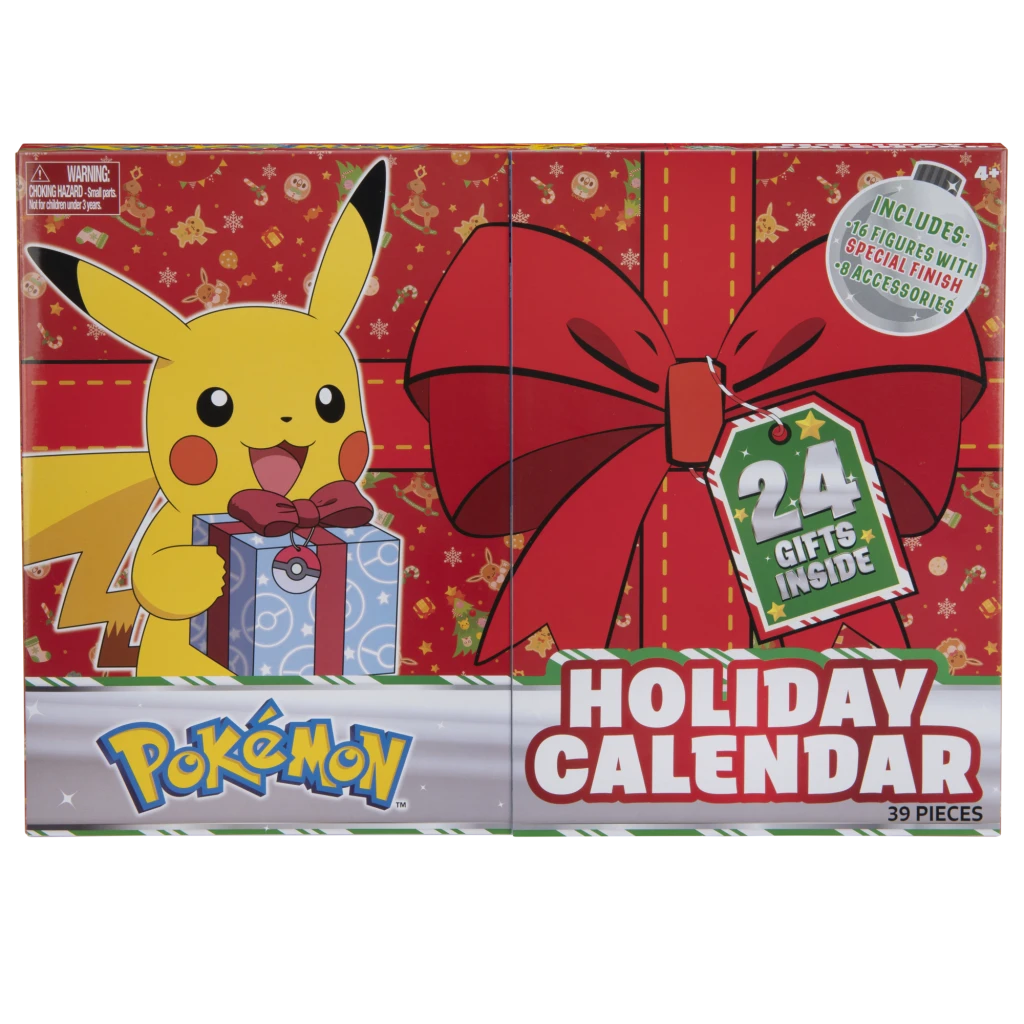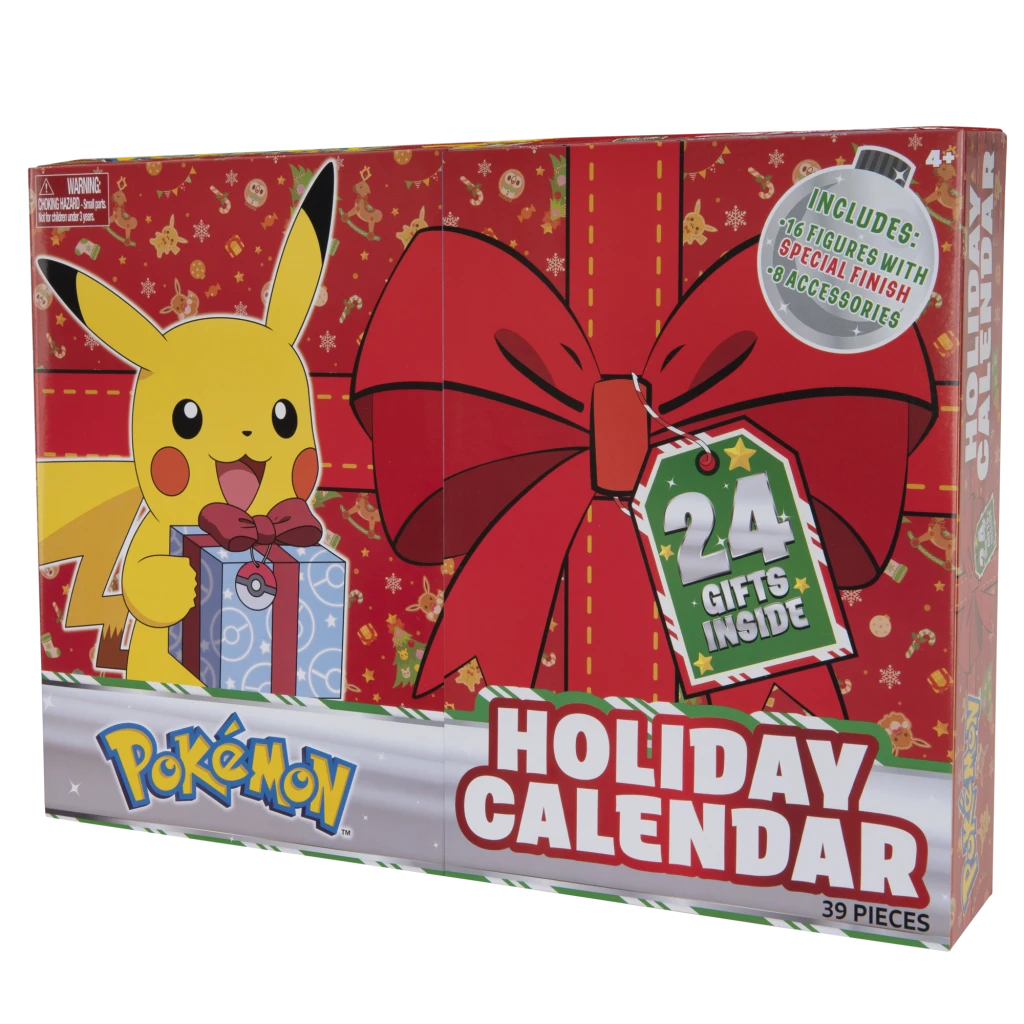 Pokémon adventný kalendár obsahuje 16 figúrok + ďalšie príslušenstvo. Každý deň prinesie nové prekvapenie, pretože keď otvoríte dvierka s ďalším číslom, nájdete za nimi figúrku Pokémona (celkom je tam až 16 rôznych hrdinov, medzi nimi Pikachu, Squirtle, Bulbasaur a Eevee) alebo predmet spojený s Vianocami (celkom 8)! Adventný kalendár obsahuje až 24 dielikov a určite poteší každého fanúšika Pokémonov!