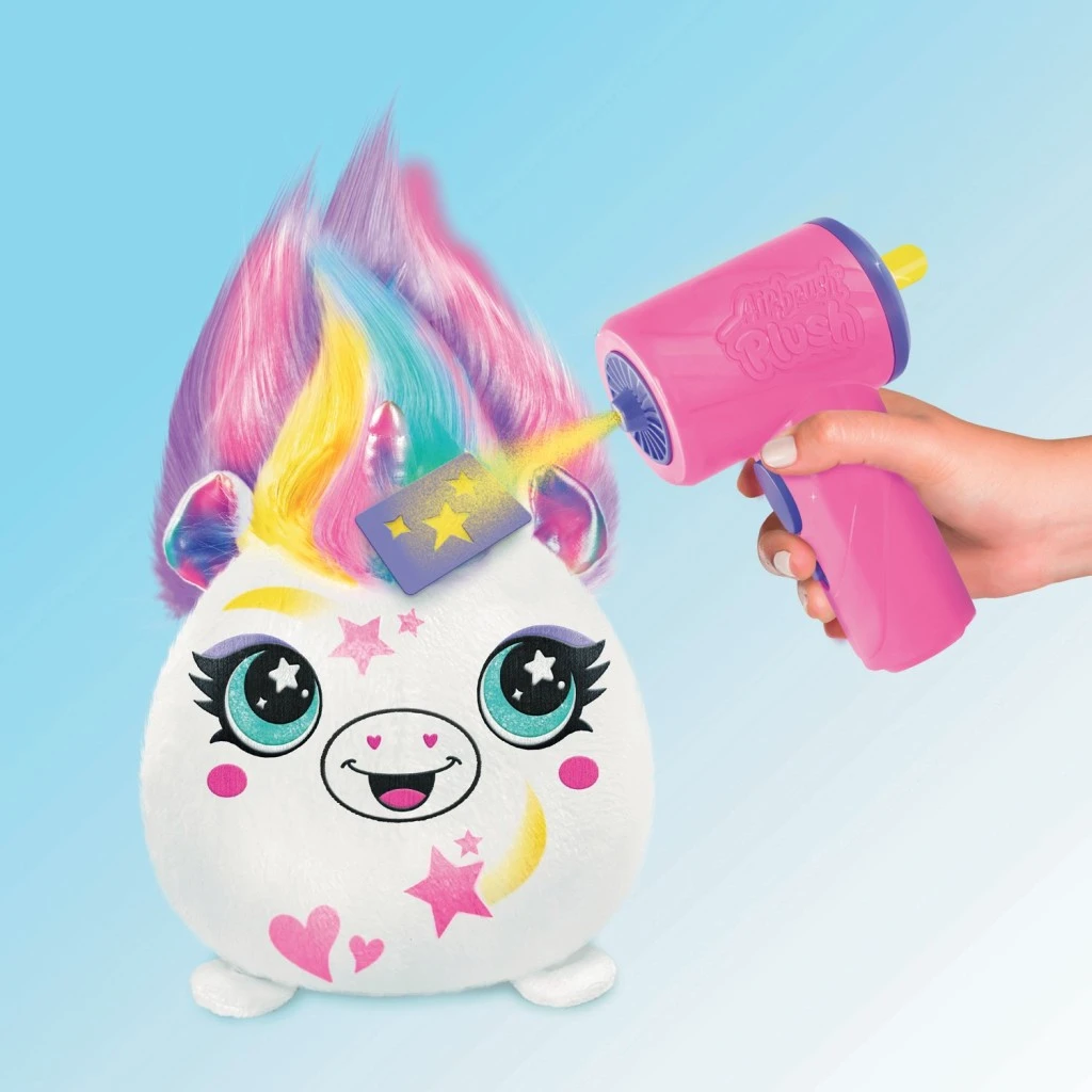 Airbrush kreatívna sada Hair´iffic s vlasatým plyšákom skvele zabaví každého. plyšáka vyprať podľa návodu a po uschnutí môžete znova tvoriť.