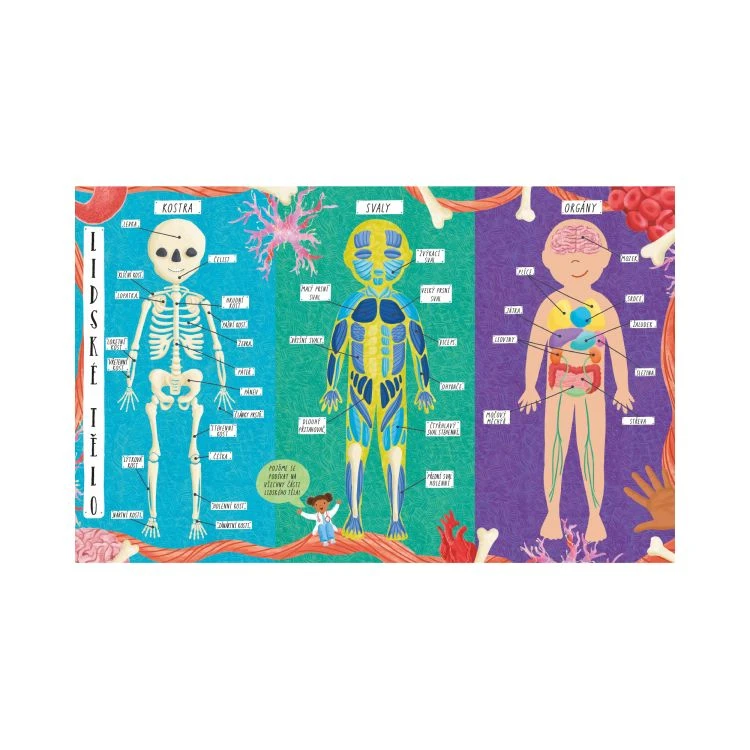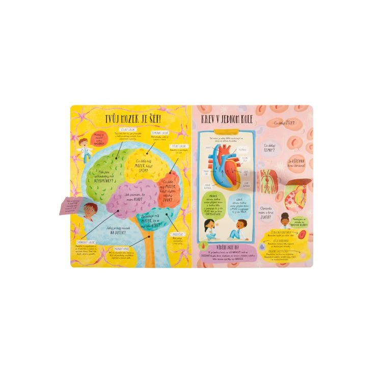 Krásne ilustrovaná detská kniha obsahuje viac ako 60 okienok so zaujímavosťami o ľudskom tele.
