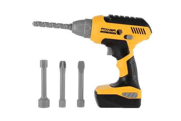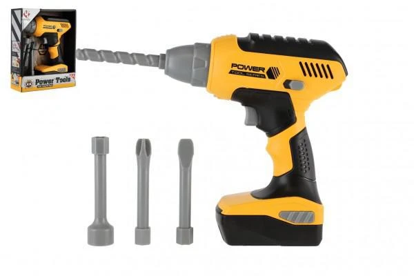 Aku vŕtačka plastová s doplnkami na batérie a so zvukom 15x18 cm.