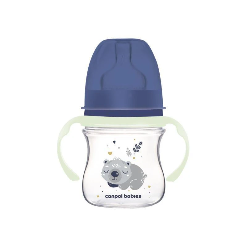 Silikónový cumlík je mäkký, bez chuti a zápachu – uľahčuje dieťaťu prijatie fľaštičky. Jasná a presná stupnica – umožňuje vám kontrolovať množstvo, ktoré vaše dieťa vypije. Široký otvor – uľahčuje prípravu jedla a umývanie fľaše. Profilovaný tvar zaisťuje pohodlné držanie fľaše pri kŕmení. Pohodlné odnímateľné rukoväte svietia v tme. Kompatibilný so všetkými odsávačkami materského mlieka Canpol babies. Vhodné pre deti od narodenia.