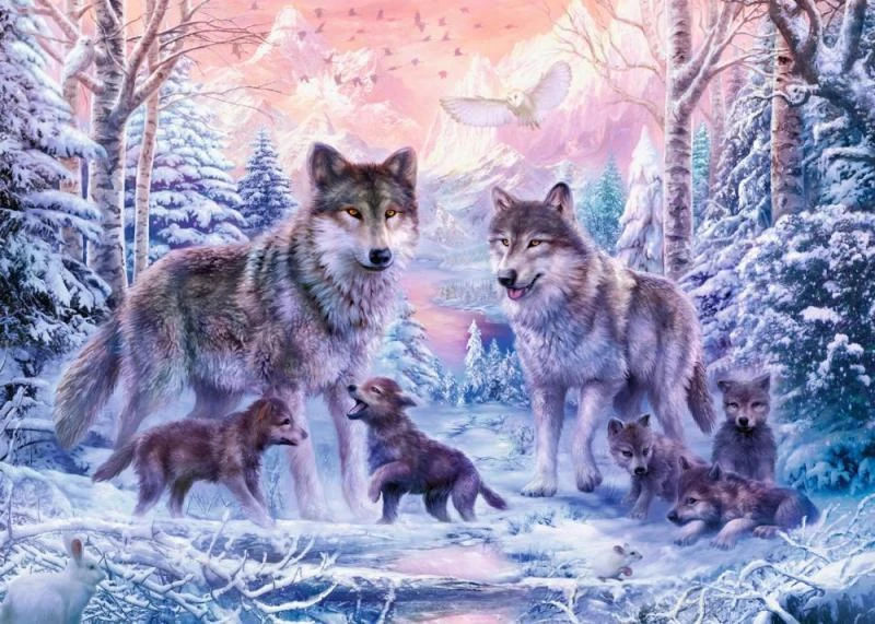 Zažite neporovnateľnú zábavu pri skladaní vysoko kvalitného puzzle s motívom arktických vlkov od spoločnosti Ravensburger.