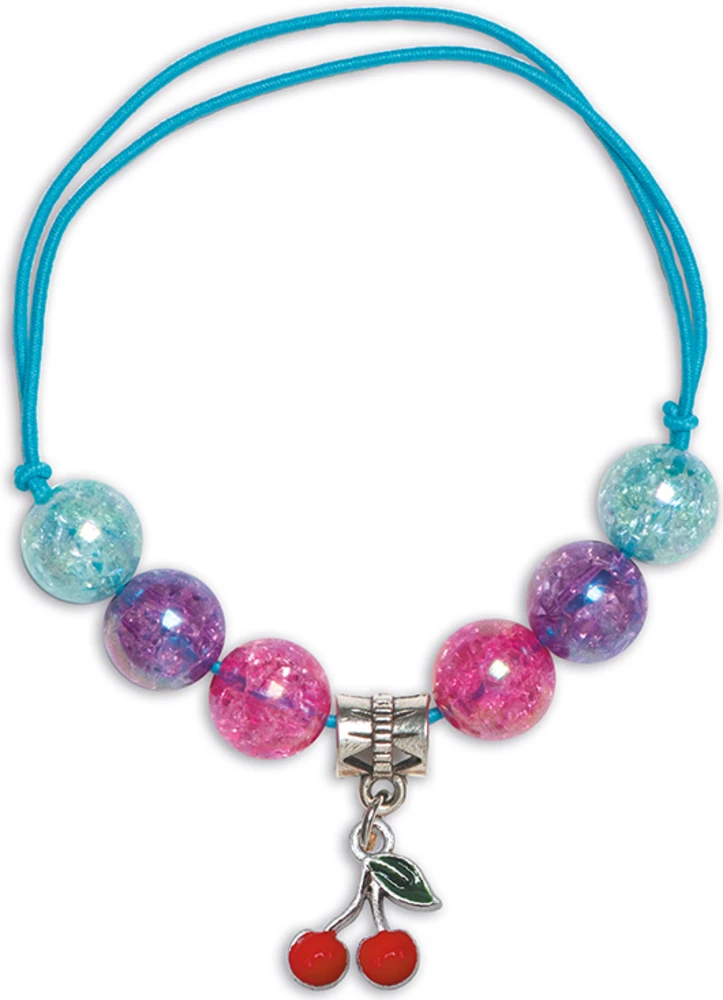 Táto sada vám umožní vyrobiť 8 náramkov s veľkými korálkami a príveskami. Z krabičky sa stane pekná šperkovnica a skladá sa z: 15 okrúhlych strieborných guličiek 15 okrúhlych praskajúcich guličiek 8 dištančných guličiek s krúžkami 8 perlových guličiek 8 kúziel (dúha, srdce, ďatelina, okrídlené srdce, čereš spojovacích krúžkov 6 okrúhlych guličiek s prechodom 2 hviezdicové guličky 2 dúhové guličky 1 pinzeta modrej, ružovej a striebornej elastickej nite 1 brožúrka s návodom a vzormi.