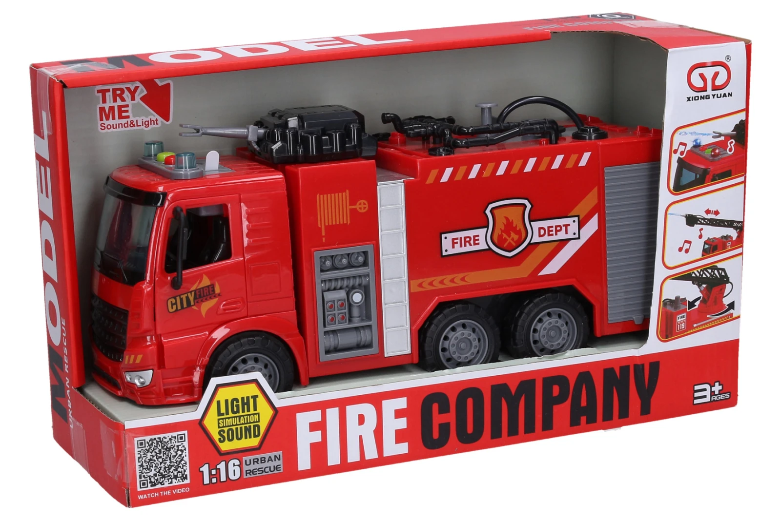 Toto striekacie hasičské auto o veľkosti 30 cm prináša deťom realistickú akčnú zábavu. Auto jazdí na zotrvačník a ponúka svetelné aj zvukové efekty, ktoré sa spúšťajú tlačidlami na kabíne.