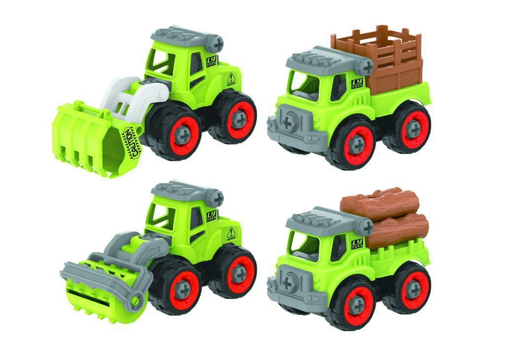 Auto skrutkovacie poľnohospodárske 4 ks. Veľkosť 13 cm. Voľné kolesá. V balení - 4 autá, náklad, skrutkovač.