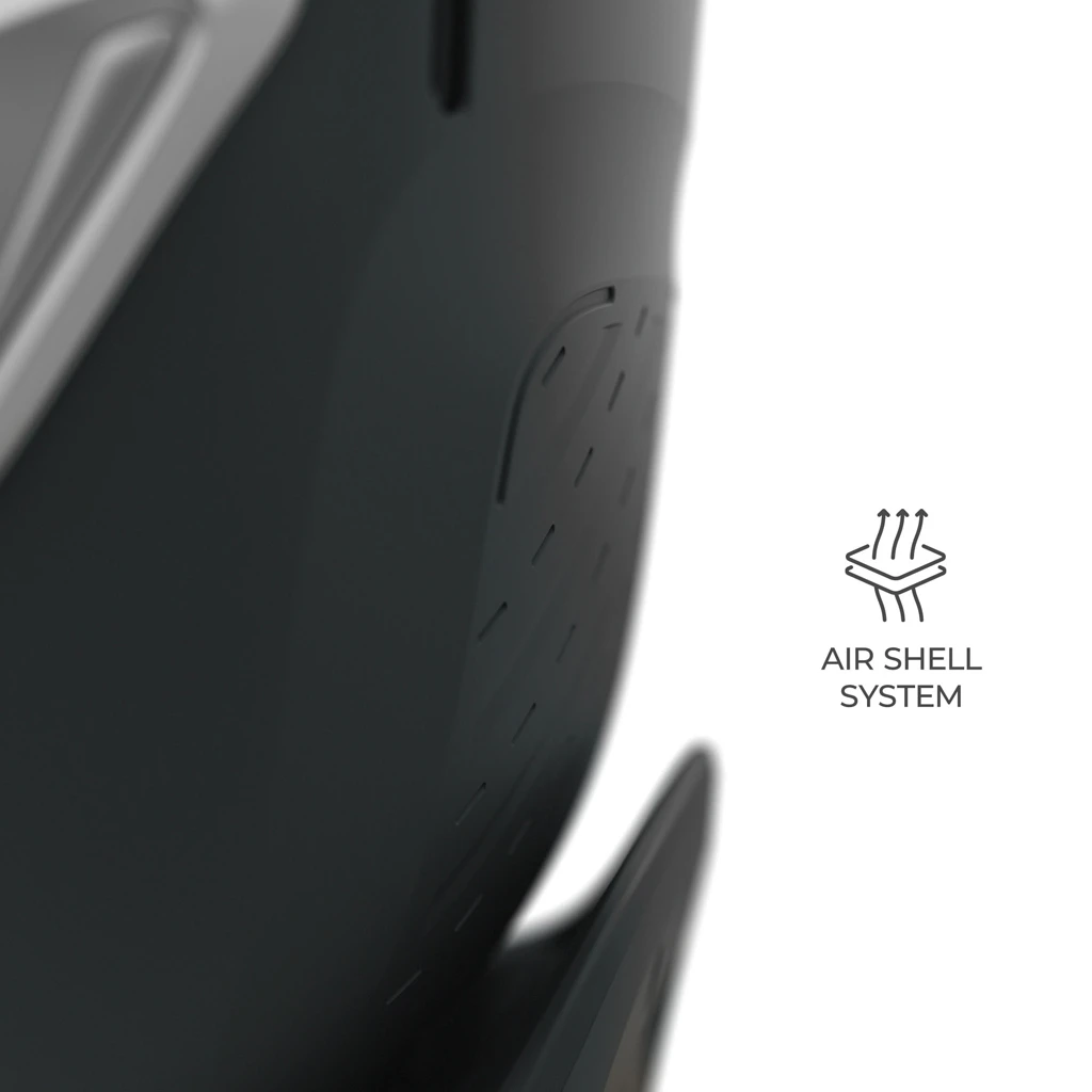 - AIR FLOW a priedušný poťah – ventilovaná škrupina a vzdušné materiály znižujú riziko prehriatia, najmä v teplých dňoch.