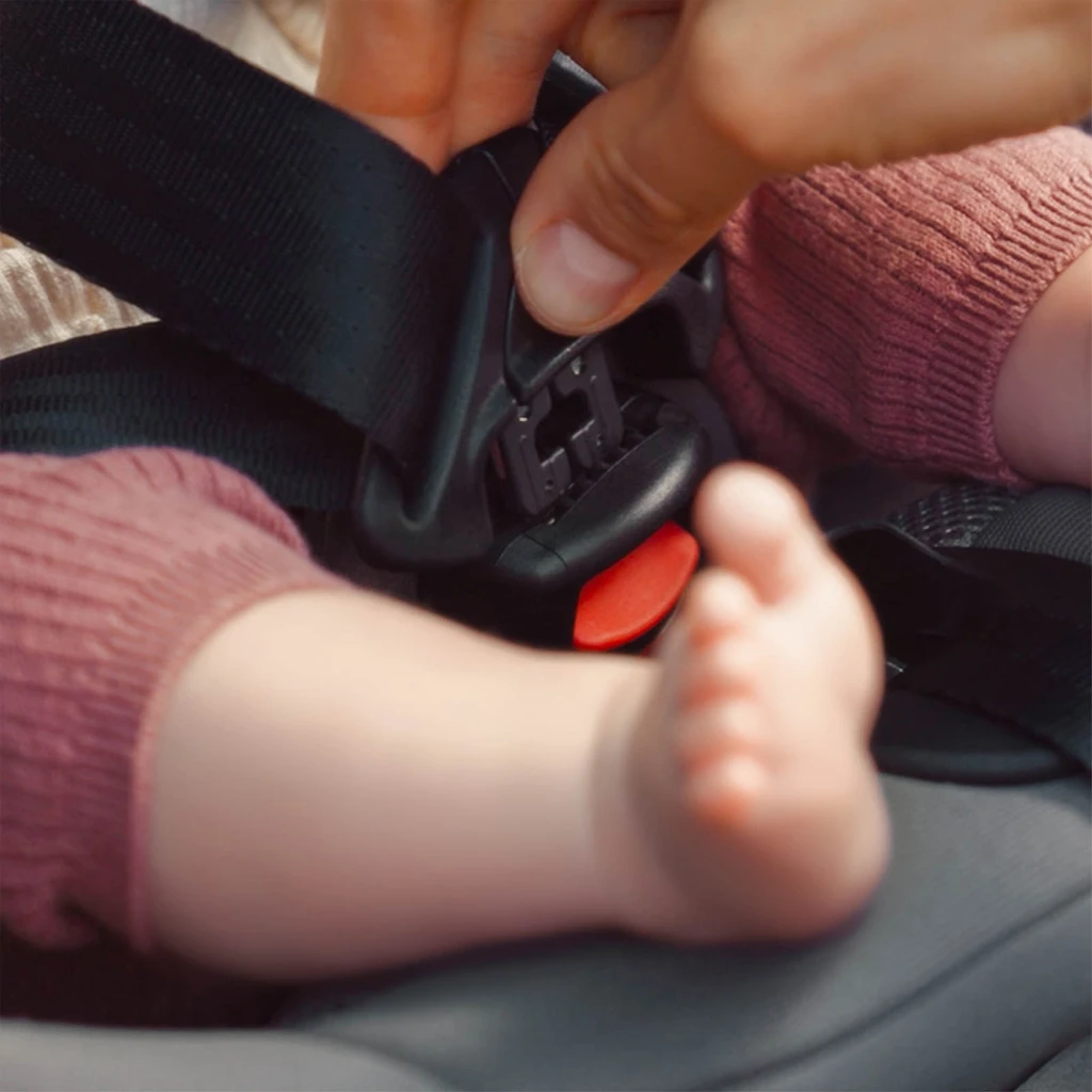 Vnútorné 5-bodové pásy majú protišmykové vložky a na bokoch sedačky sa nachádzajú háčiky na ich zavesenie. Sedačka je vybavená nesklápacou sponou, ktorá uľahčuje pripútanie dieťaťa.