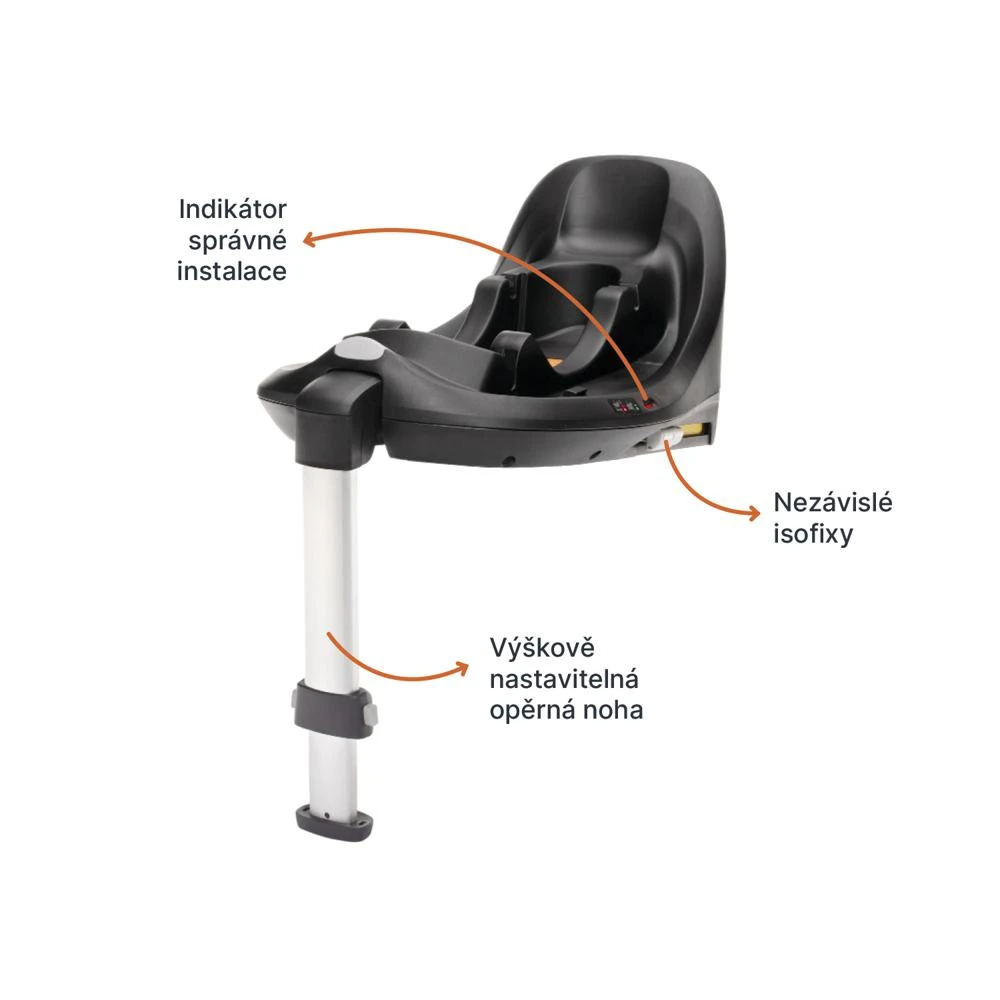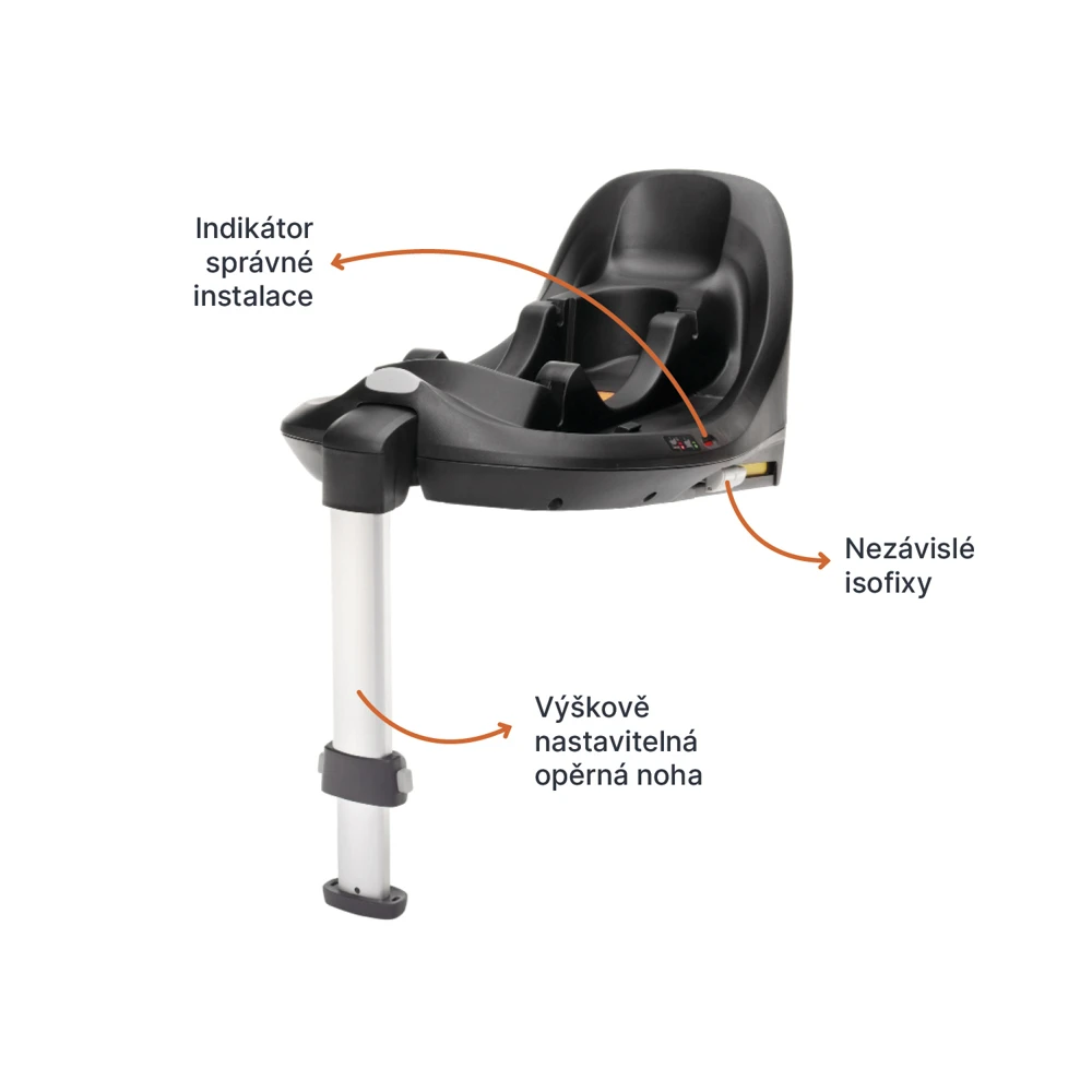 Nezávislé ISOFIX s indikátormi pre jednoduchú a bezpečnú inštaláciu autosedačky do vozidla. Autosedačka disponuje opornou nohou, ktorá pridáva ďalší bod pre väčšiu stabilitu aj oporná noha má svoj indikátor správneho nastavenia. Lepšiu stabilitu zaistí aj bezpečnostný oblúk. Správnu inštaláciu autosedačky na základňu vám potvrdia indikátory správnej inštalácie. Vybratie autosedačky zo základne jednoducho cez poistku.