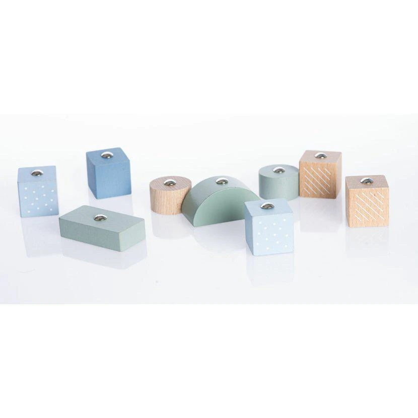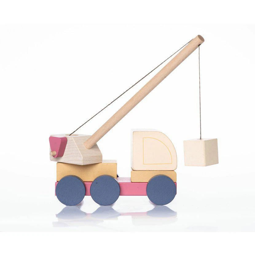 Autožeriav s magnetom je drevená skladačka so 14 farebnými dielmi. 10 samostatných kociek predstavujúcich náklad má v sebe zabudované kovové pliešky, vďaka ktorým ich magnet na žeriave môže zdvihnúť a premiestňovať.