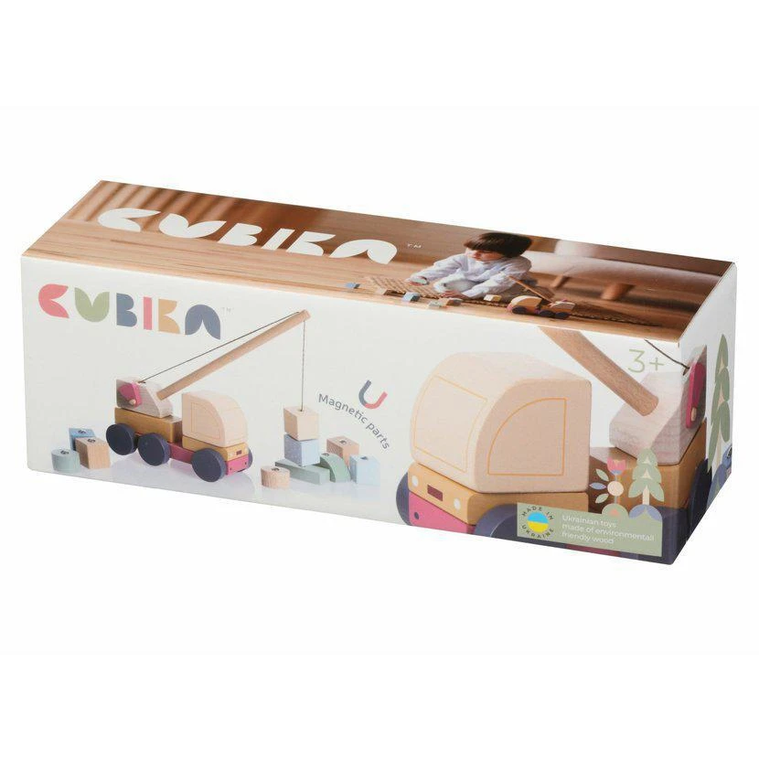 Autožeriav s magnetom - drevená skladačka 14 dielov Cubika