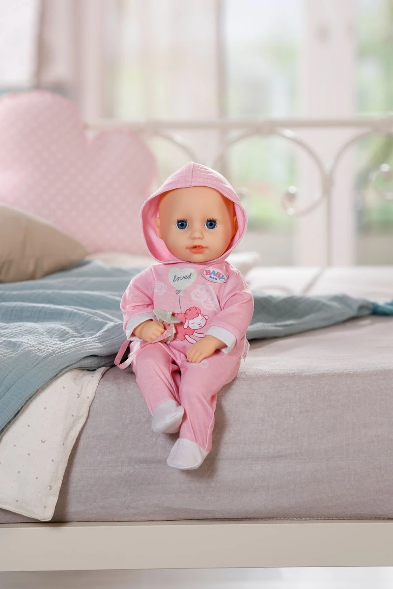 Súčasťou balenia je fľaštička, cumlík a pohodlné dupačky s kapucňou. Vďaka malej veľkosti a jednoduchému hernému princípu sa o svoju bábiku zvládnu postarať aj tí najmenší. Všetky doplnky Baby born veľkosti 36 cm sú s Hannah kompatibilné.