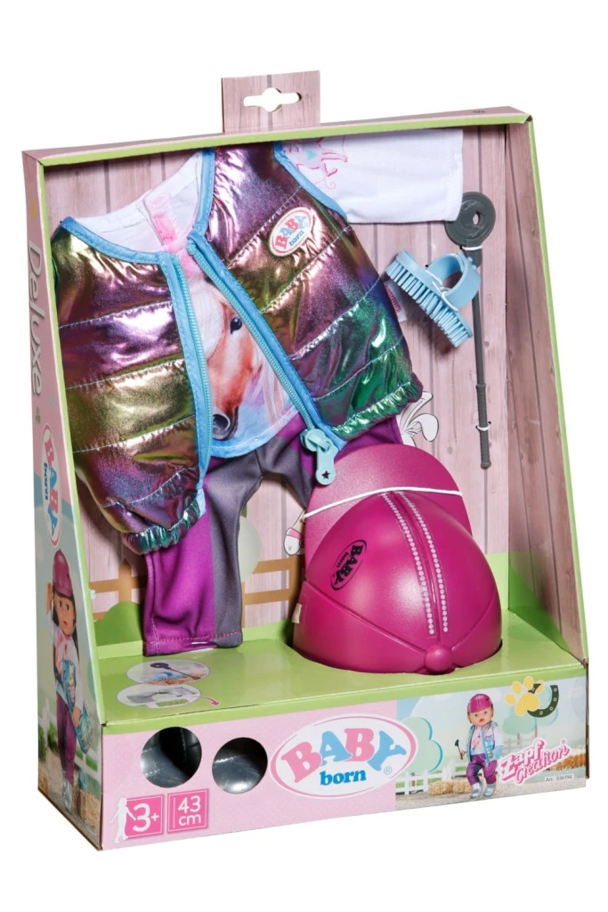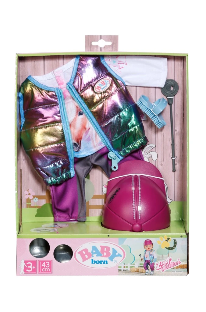 Všetko dokonale ladí a premení každú hru na realistické jazdecké dobrodružstvo. Oblečenie padne bábike BABY born aj Staršej sestričke a ďalším bábikám veľkosti 43 cm.