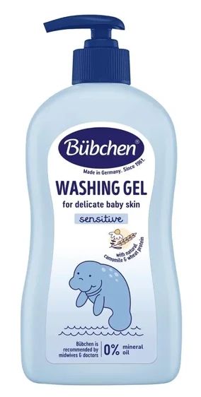 Jemný umývací gél Bübchen Baby sa stará o pokožku vášho bábätka veľmi šetrne. Obsahuje totiž harmanček a pšeničné proteíny, ktoré detskú pleť čistia a vyživujú od hlavy až po päty. Šetrne umyje aj vlásky. Pokožka po umytí bude opečovaná a hebká, Gél neštípe v očiach. môžete ho s kľudom používať každý deň.