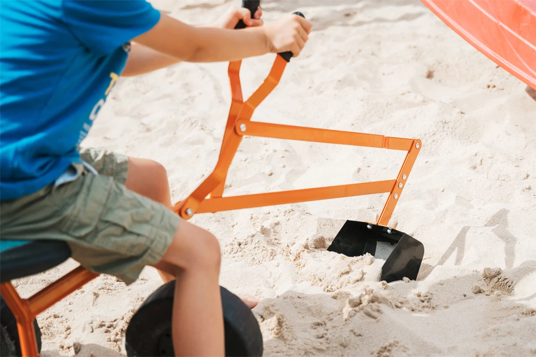 Detský bager s otočnou konštrukciou o 360 ° ponúka realistickú hernú zábavu bez kompromisov. Robustná bagerová lyžica sa ovláda pomocou dvoch pák, ktoré deťom umožňujú ľahko naberať, zdvíhať a vyklápať piesok aj drobné poklady.