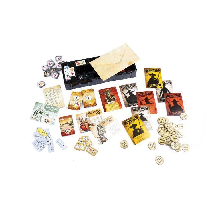 Kocková explózia obsahuje: 9 kociek, 36 kariet postáv, 18 kariet rolí, 1 kartu ducha, 29 malých kariet, 17 prehľadových kariet, 3 rozdeľovače kariet, 10 žetónov šípov, 44 žetónov nábojov, 7 žetónov ducha, 15 žetónov 3 slovenských kariet.