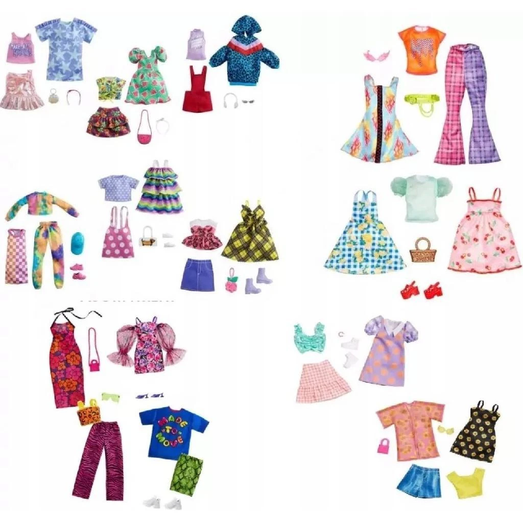 Obsahuje dva outfity a dva doplnky (jedným outfitom sú šaty, alebo horná a spodná časť), bábika nie je súčasťou balenia. Univerzálny strih navrhnutý tak, aby vyhovoval väčšine bábik Barbie®.