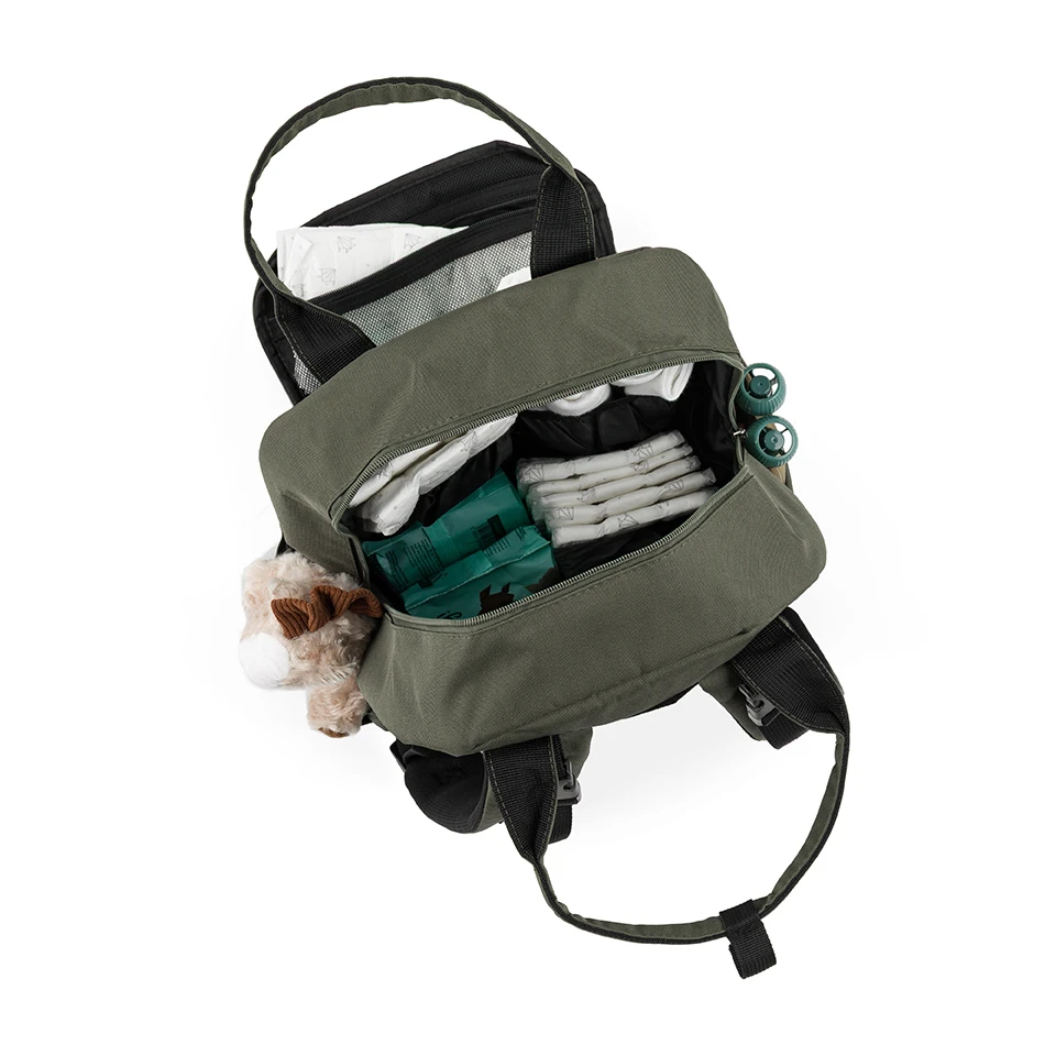 - 2 termálne vrecká (vhodné pre všetky bežné detské fľaše) zabudované v batohu, ktoré udržia dojčenskú fľašu v požadovanej teplote.