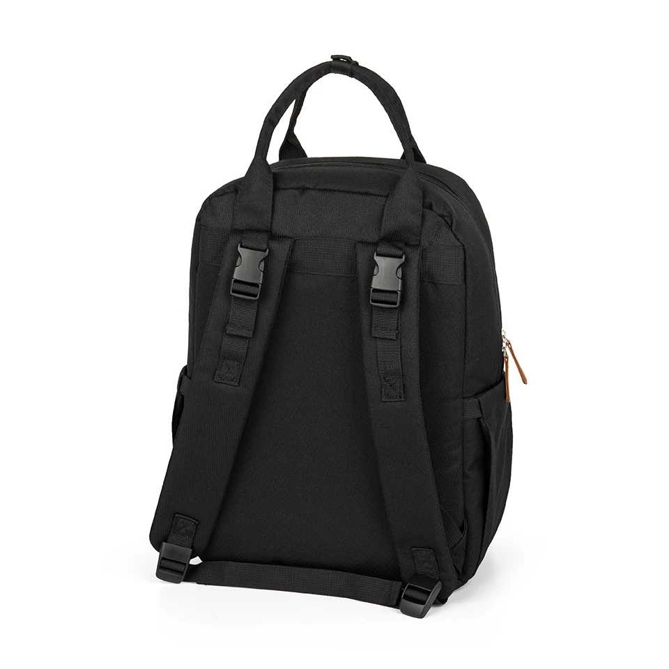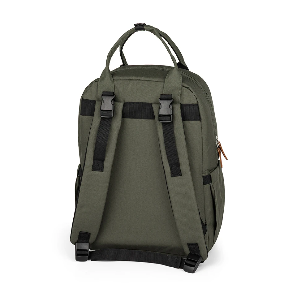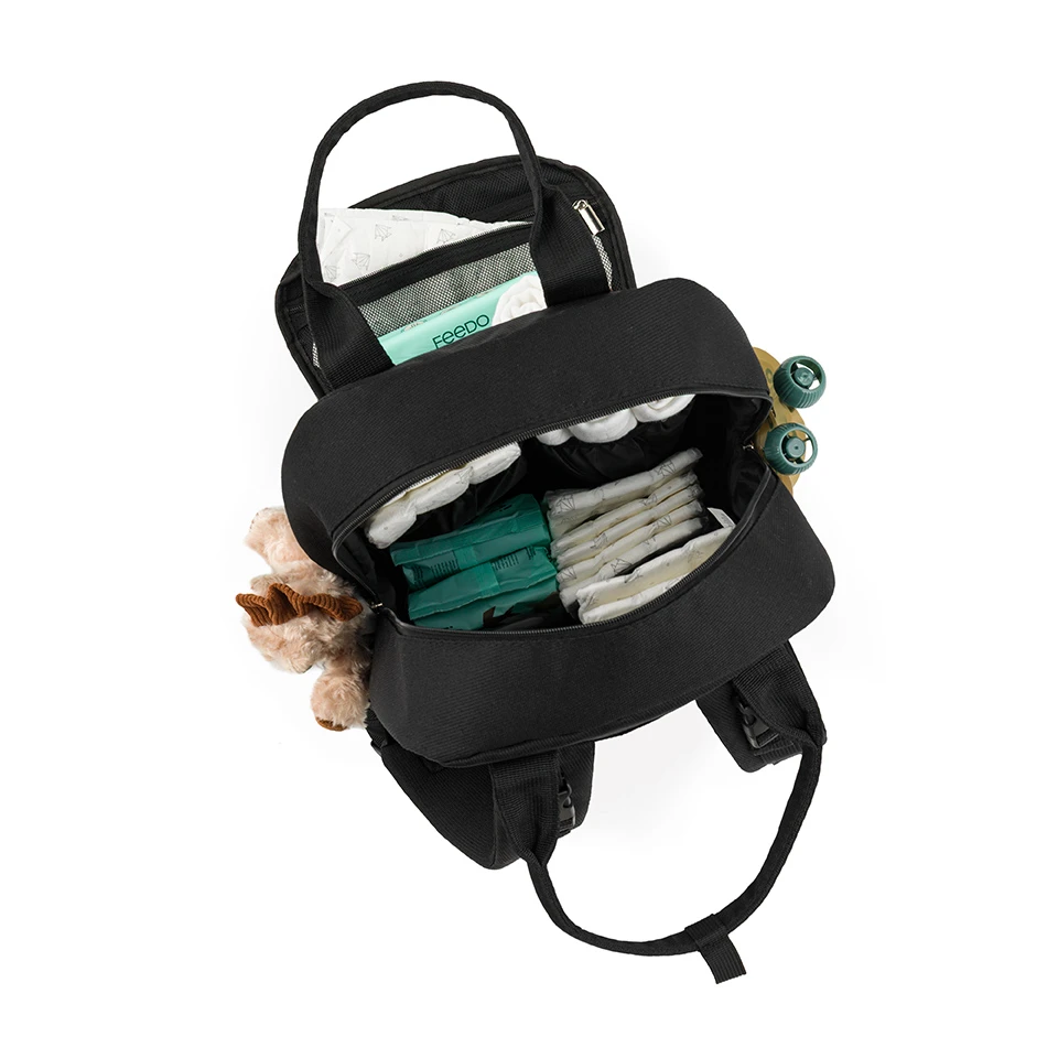 Batoh obsahuje 2 hlavné priehradky, 2 termálne vrecká, navyše 2 bočné vrecká na fľašu a obrúsky a špeciálne vrecko na multifunkčnú prebaľovaciu podložku, do ktorej sa zmestí tablet alebo notebook (až do 15,6 "). Vďaka niekoľkým vreckám s hladkým zipsom máte k obsahu tohto batohu jednoduchý prístup.