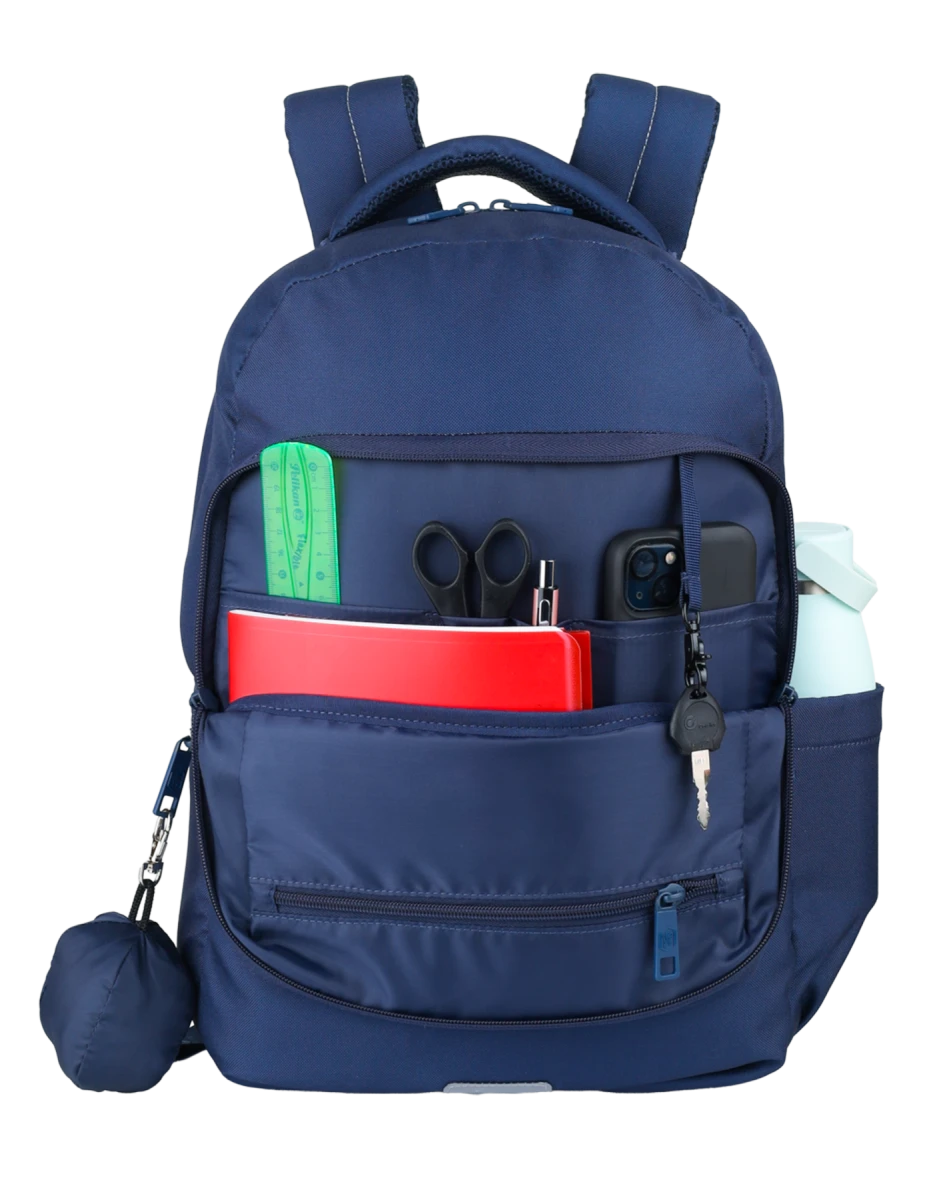 Veľká hlavná priehradka a vystužené vrecko na notebook, menšie vrecko vpredu a dve bočné. Spevnené dno plecniaka. Vystužený, prešívaný chrbát, nastaviteľné ramenné popruhy.