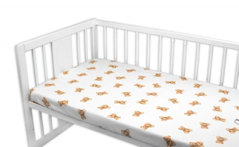 Bavlnená prestieradlo do postieľky 120 x 60 cm Míša, biela s potlačou Baby Nellys