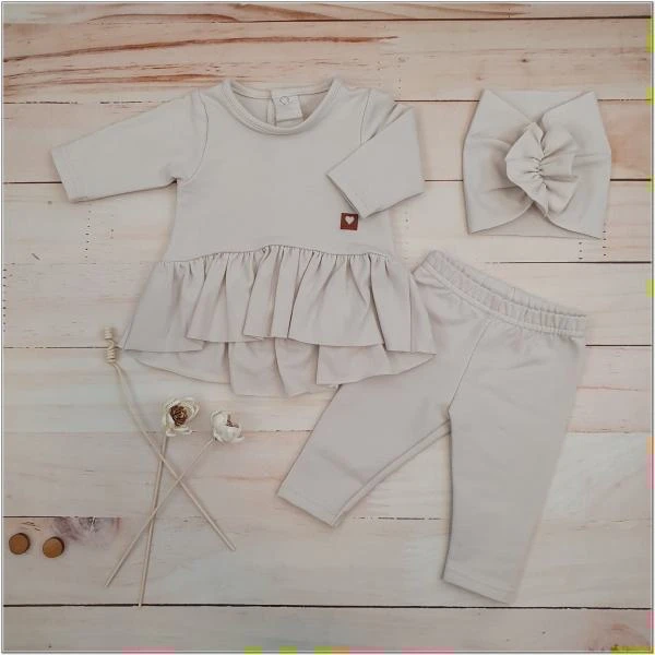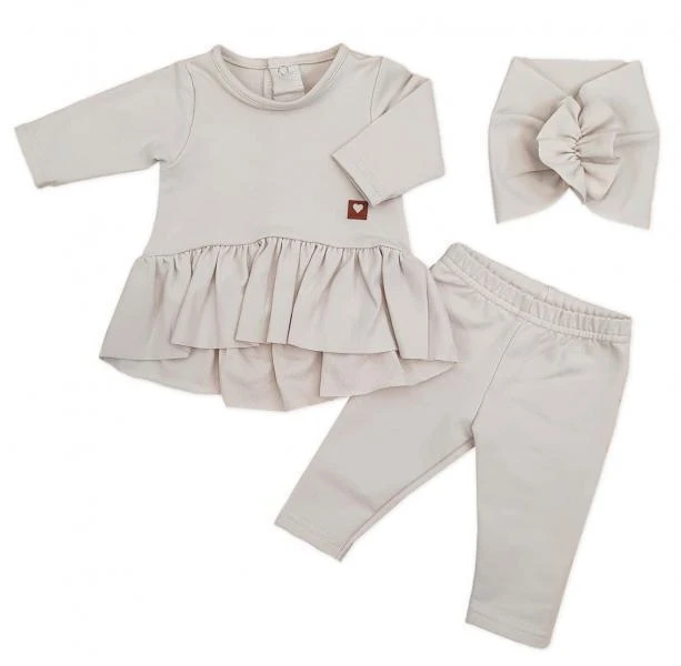 Bavlnená svetlo béžová súprava 3dielna - tunika, legíny, turban Z&Z
