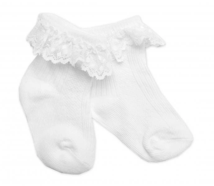Bavlnené ponožky s čipkovým volánikom Baby Nellys, biele