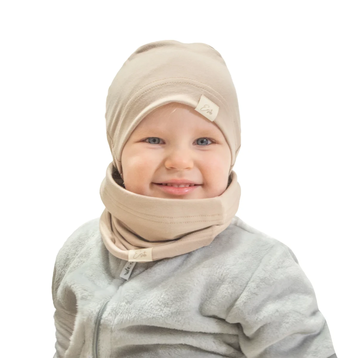 Detský bavlnený nákrčník Latté vyrobený v našej šijacej dielni so starostlivosťou a láskou k deťom v podhorí Orlických hôr. Nákrčník zaisťuje priedušnosť a príjemné nosenie