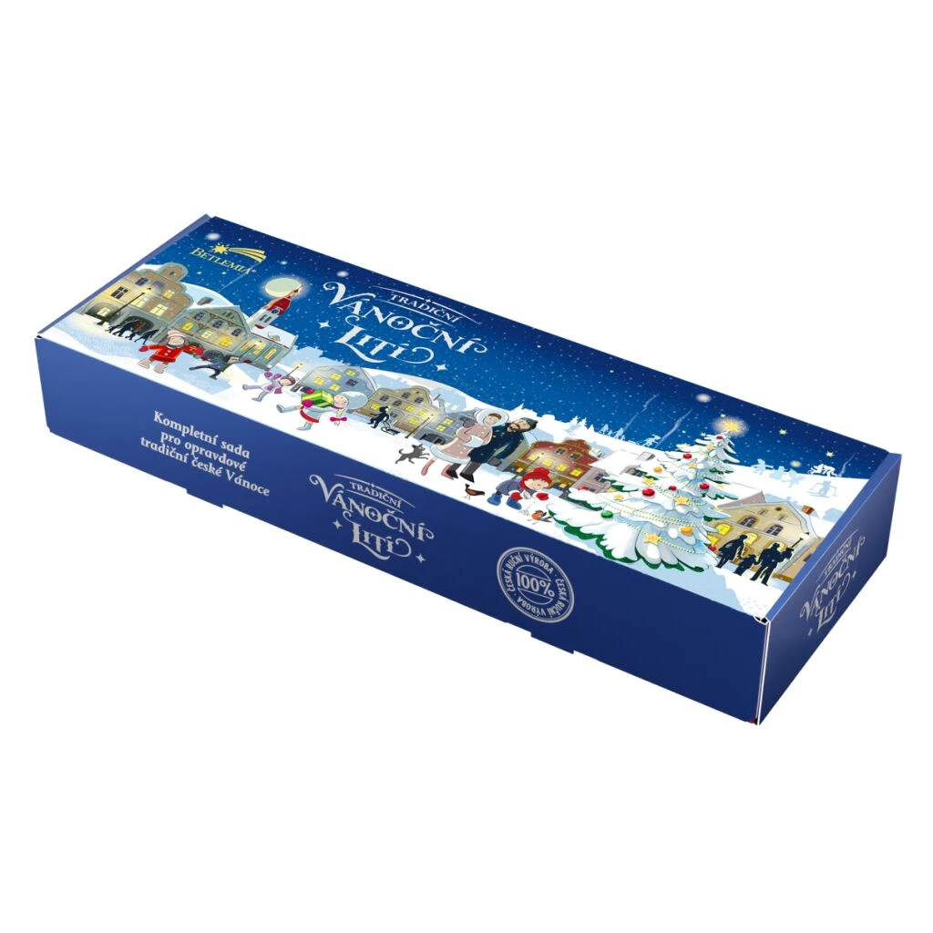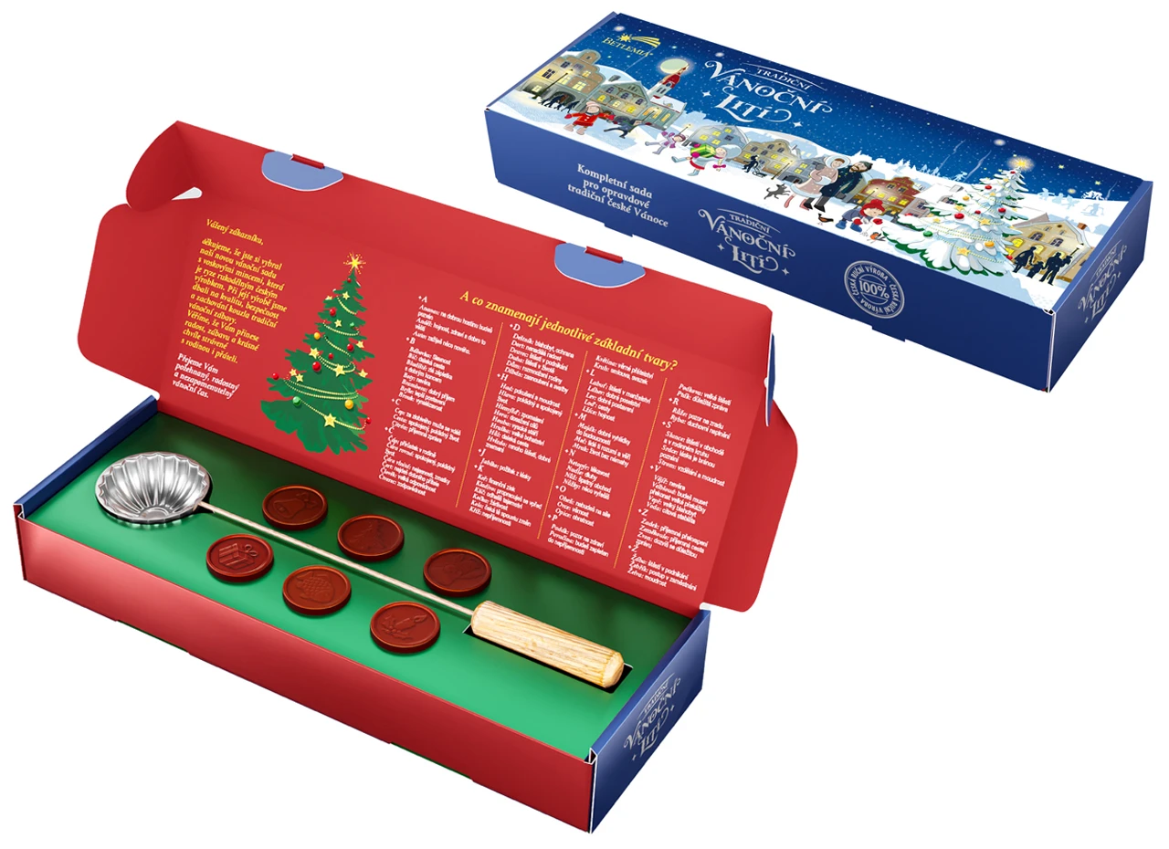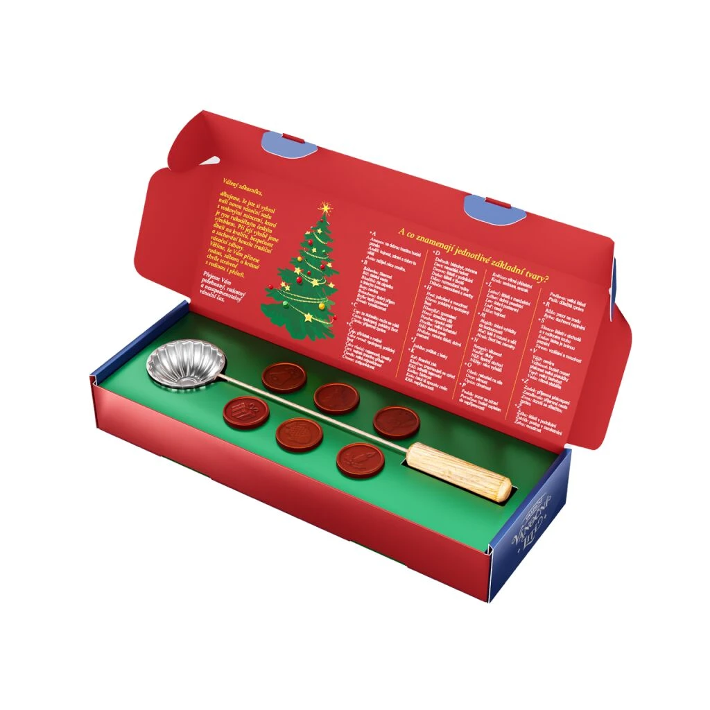 Tradičná sada pre vianočné liatie vosku so sviečkami, voskom a lyžičkou. Ideálne pre rodinné chvíle a oživenie vianočných zvykov.