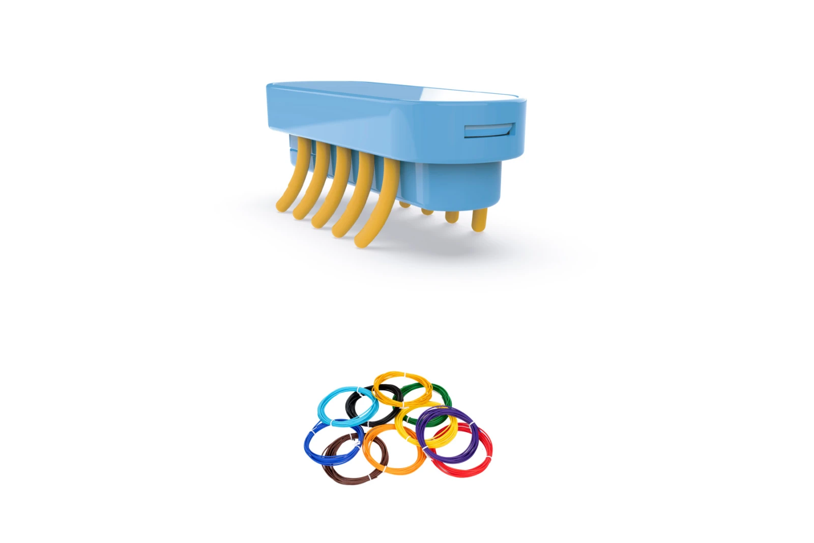 Sada obsahuje chodiace zariadenie na batérie, 10 šablón na tvorbu zvieratiek, 17 farebných náplní (2 m), podložku pre pohodlnú prácu a batériu 1× AG13 (LR44). Prepínač ON/OFF sa nachádza priamo na zariadení. 3D pero nie je súčasťou balenia. Český obal zaisťuje jednoduchú orientáciu aj pochopenie produktu.