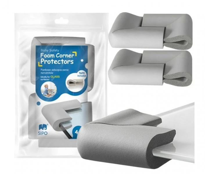 Ochrana rohov a hrán skleneného nábytku šedá penová, súprava 4 ks Sipo