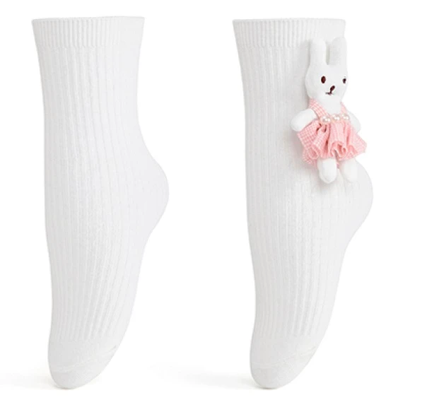 Biele ponožky s aplikáciou zajačika v šatách Veľ. 23-29