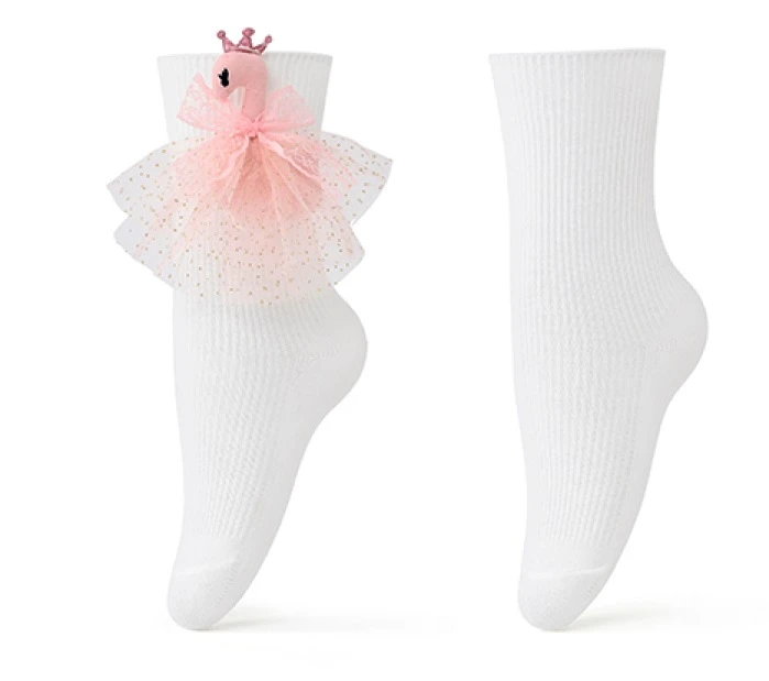 Biele slávnostné ponožky s tylovou ozdobou a labutou Vel. 18 - 23