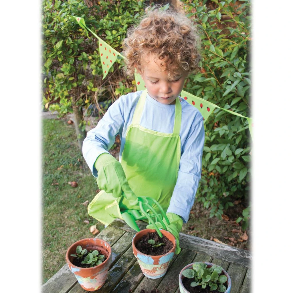 Záhradný set náradia v zelenej farbe obsahuje 3 ks plastového náradia na sadenie rastlín. Zábavná, bezpečná a odolná sada záhradného ručného náradia špeciálne navrhnutá pre najmenších vo veku 18 mesiacov.