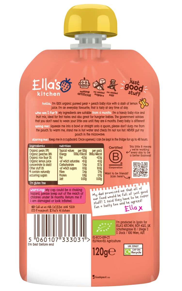 Výrobca: Ella Kitchen Ella Barn, 22 Greys Green Farm Rotherfield Greys Henley-on-Thames RG9 4QG, Veľká Británia. Oficiálny distribútor: Health Academy, sro, Zbraslavská 22/49, 159 00, Praha, Česká republika.