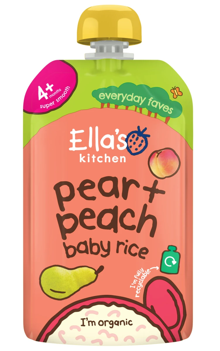 BIO Detská ryža, hruška a broskyne 120 g Ella's Kitchen