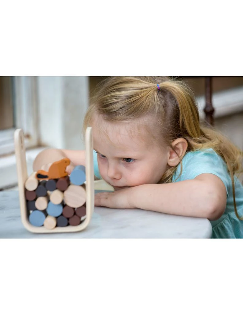 Hra pre 1-4 hráčov, pre malých aj veľkých. Použite tyč na vytlačenie jednotlivých dielikov bez toho, aby došlo k pádu bobra. Kto zachráni život bobra, ten vyhral.