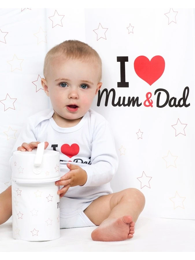 Body s potlačou New Baby I Love Mum and Dad - darčekové balenie