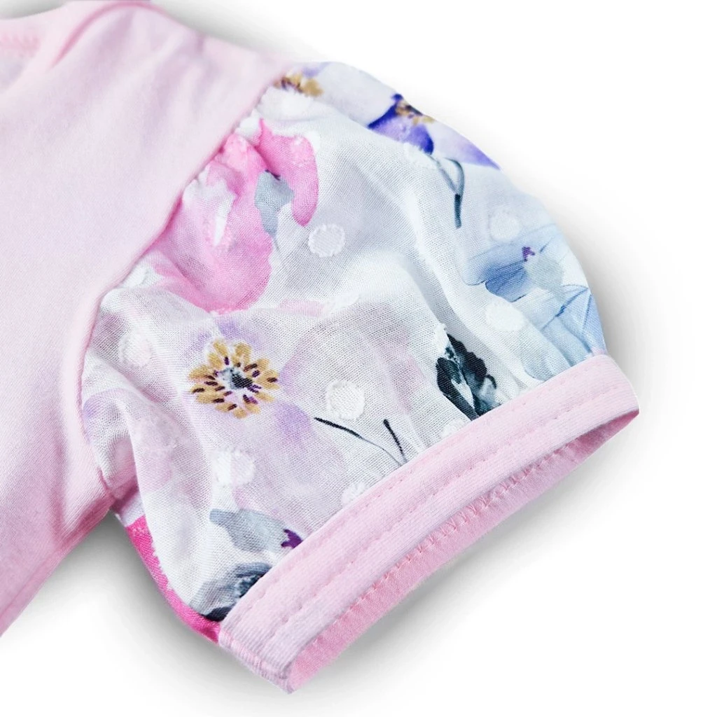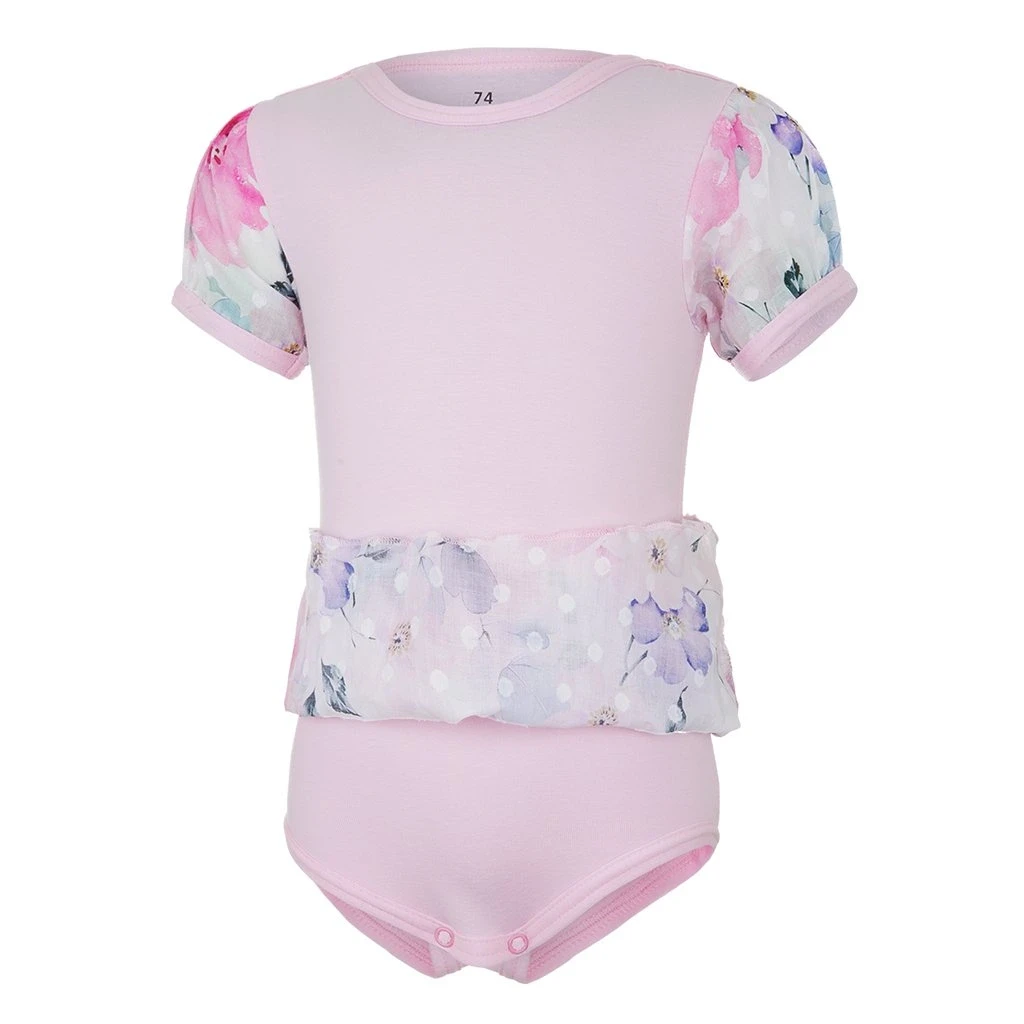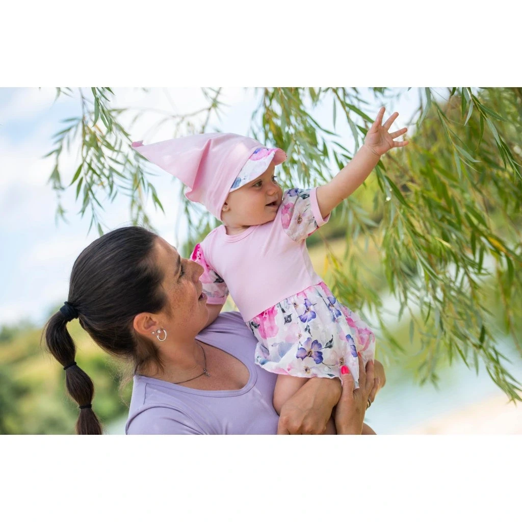 Body šaty tenké s krátkym rukávom Outlast® ružové baby/kytky Little Angel