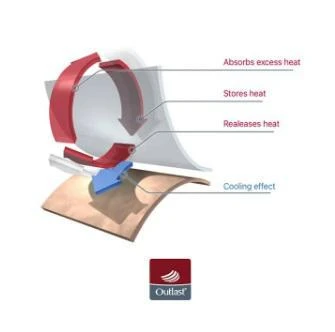 Preto keď sa teplota zvýši, či už vďaka rýchlemu pohybu alebo zvýšením okolitej teploty, Outlast® teplo odoberie skôr, než sa pokožka začne potiť. V prípade ochladenia, Outlast® telu naopak teplotu dodá.