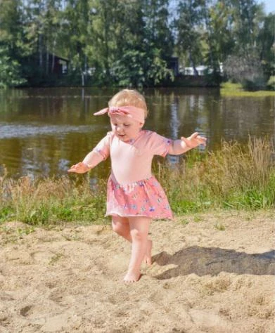 Krásne a navyše funkčné. Body šaty sú doplnené o čelenku. Set má UV ochranný faktor 50+.
