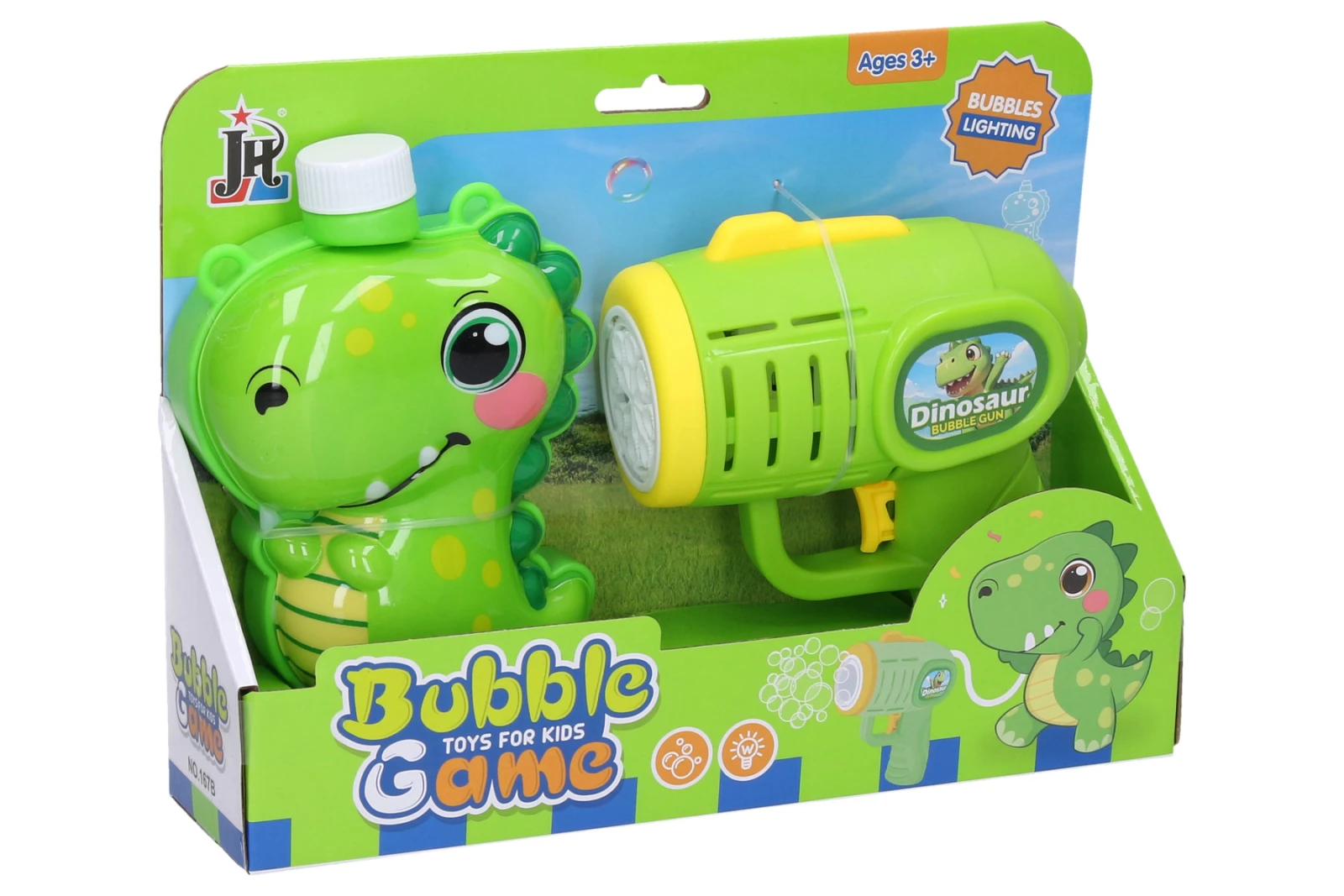 Bublifuková pištoľ s motívom dinosaura a praktickou externou nádržkou prináša dlhotrvajúcu zábavu plnú bublín a poteší každého malého dobrodruha.