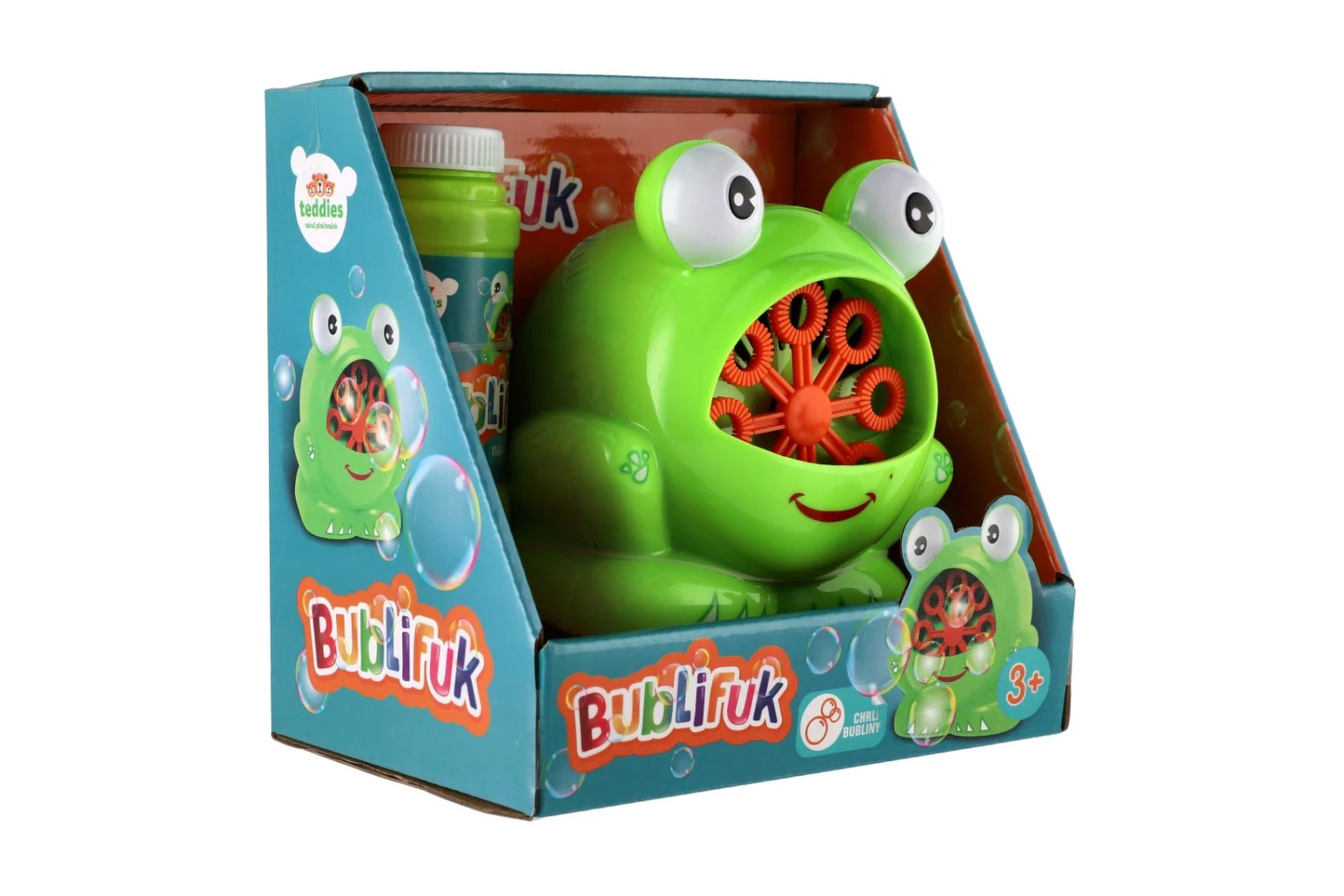 Bublifuk stroj žaba 11x13 cm na batérie + náplň
