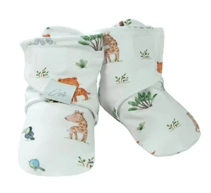 Ideálny tvar a možnosť stiahnutia podľa potreby vďaka suchému zipsu na predných dieloch a všité gumičky v oblasti nad pätou sa prispôsobia každej nôžke a zaistia, že capáčky pre bábätká vždy dobre držia na nožičke.